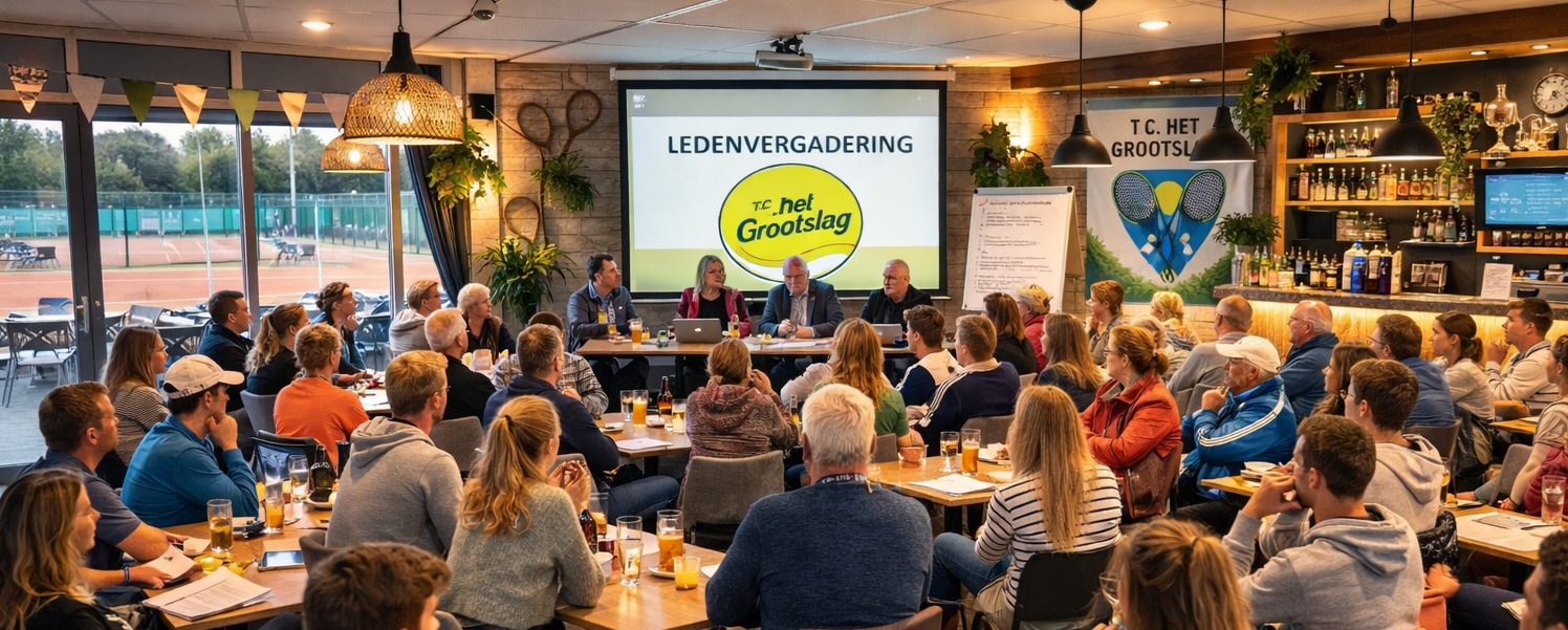 Hierbij nodigen wij u van harte uit voor de Algemene Ledenvergadering van TC Het Grootslag op maandag 2 maart 2026, aanvang 20:00 uur in de kantine.